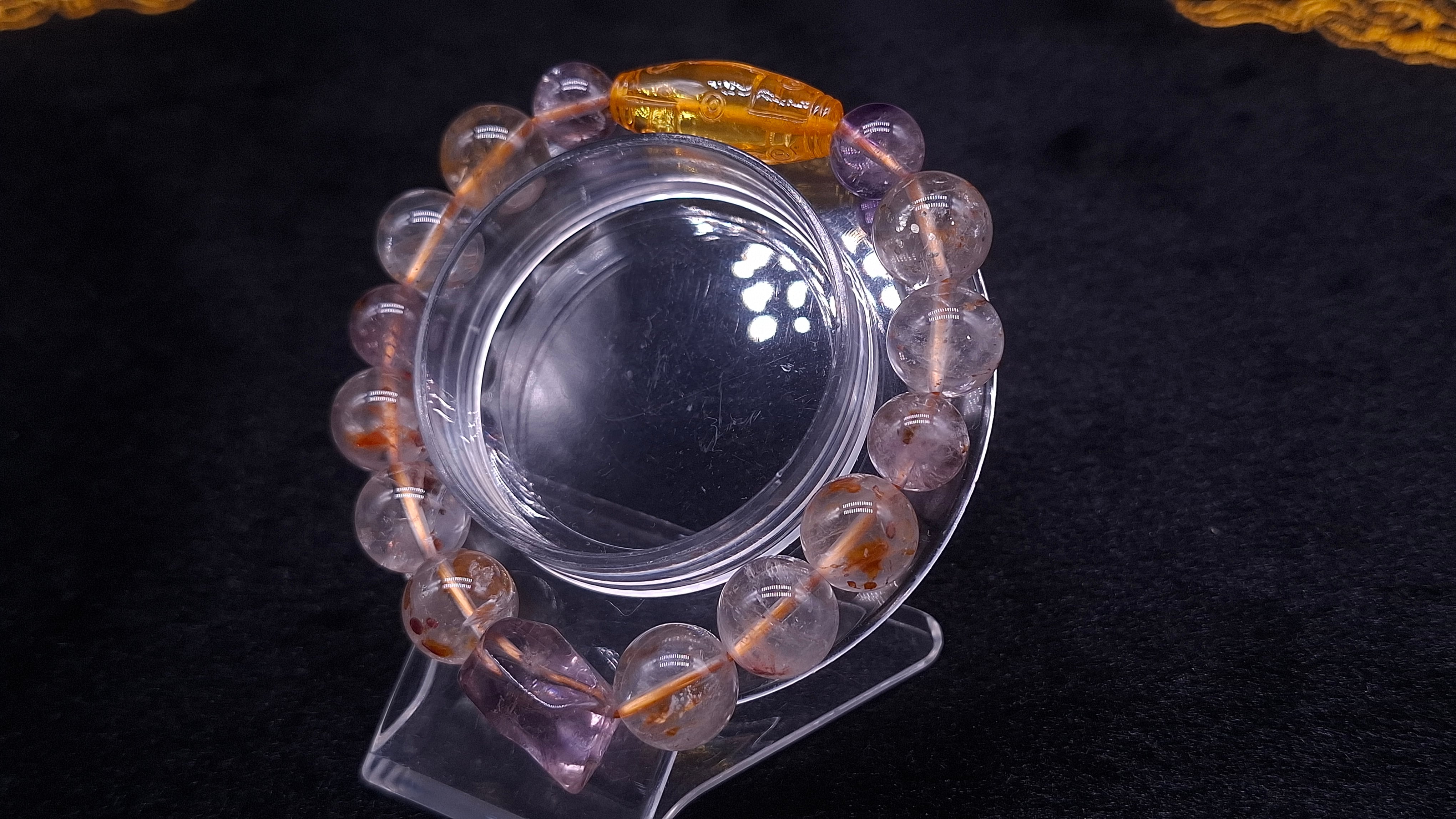 希少レア!アンバー九眼天珠デザインブレスレット(WH07839)