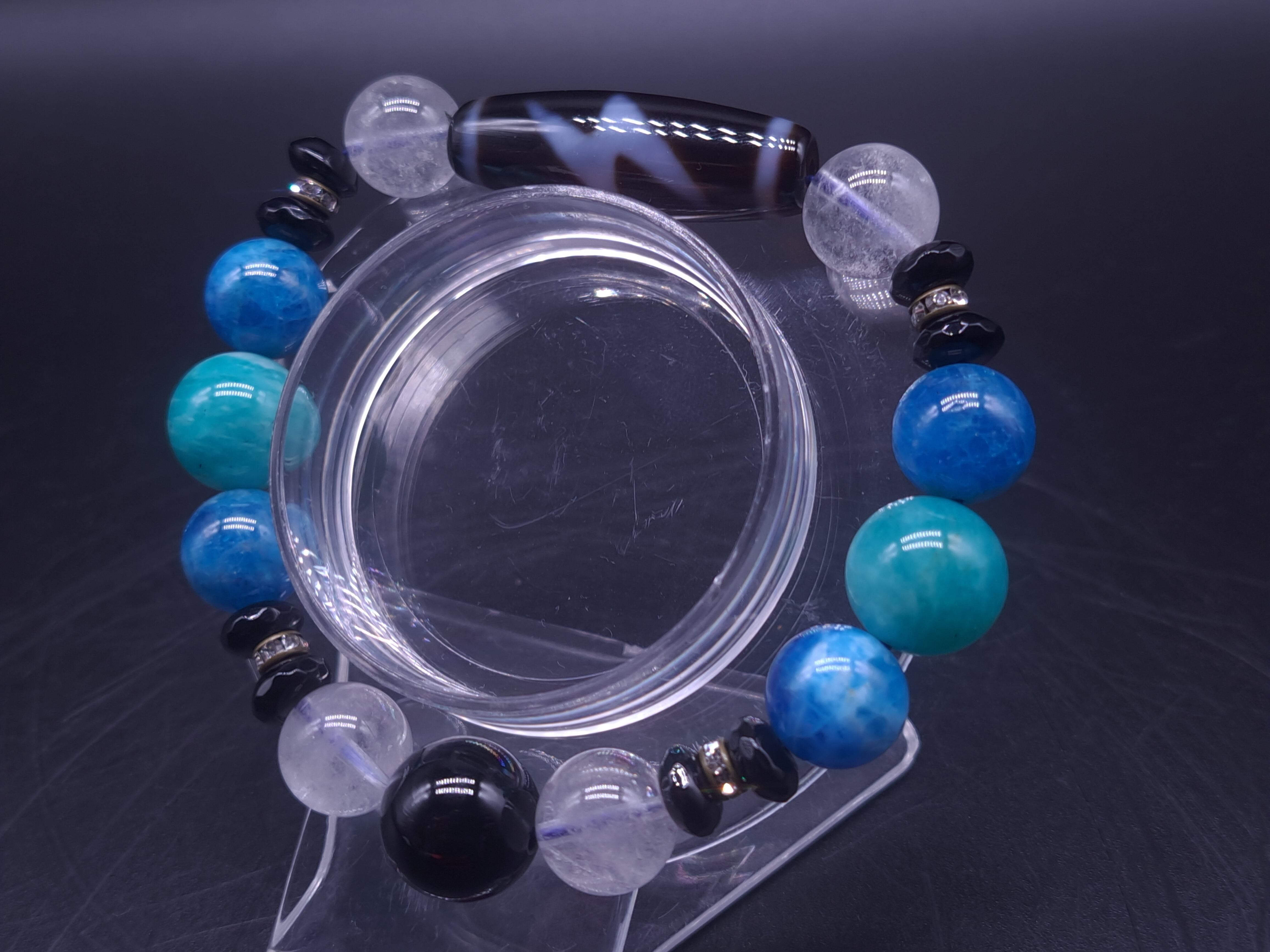 ポッチャリさん必見!内径大きめ閃電五眼天珠デザインブレスレット(E3746)
